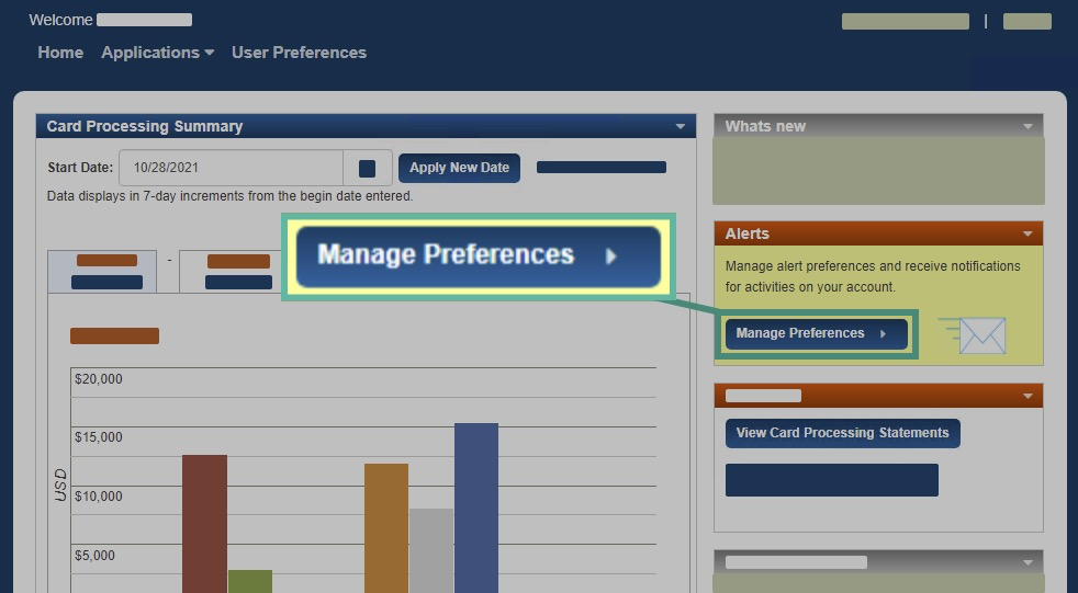 - Once you have logged in you will want to configure alerts. Click on Manage Preferences